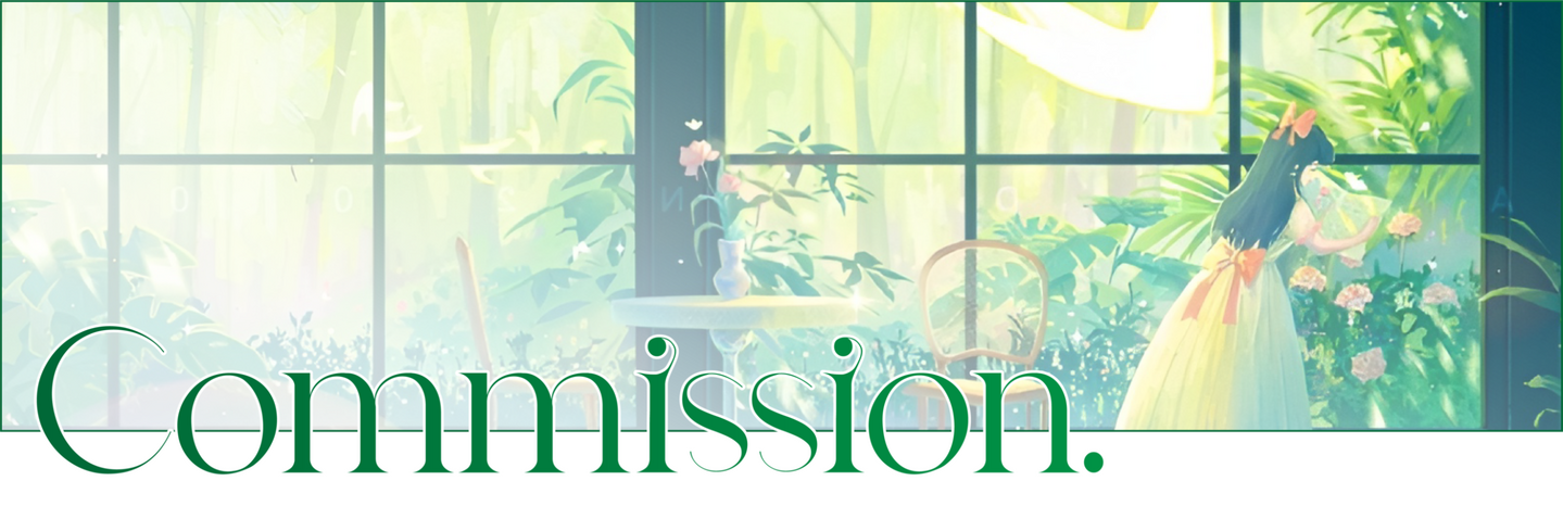 | - 所有委托默认为个人用途。 - 如果你计划商业用途(如营利项目、贩售等),请提前告知以协商商业授权费用。 - 商业费用将根据用途协商并需提前达成一致。 完稿后我可能会将作品发布于作品集或社交平台。 |